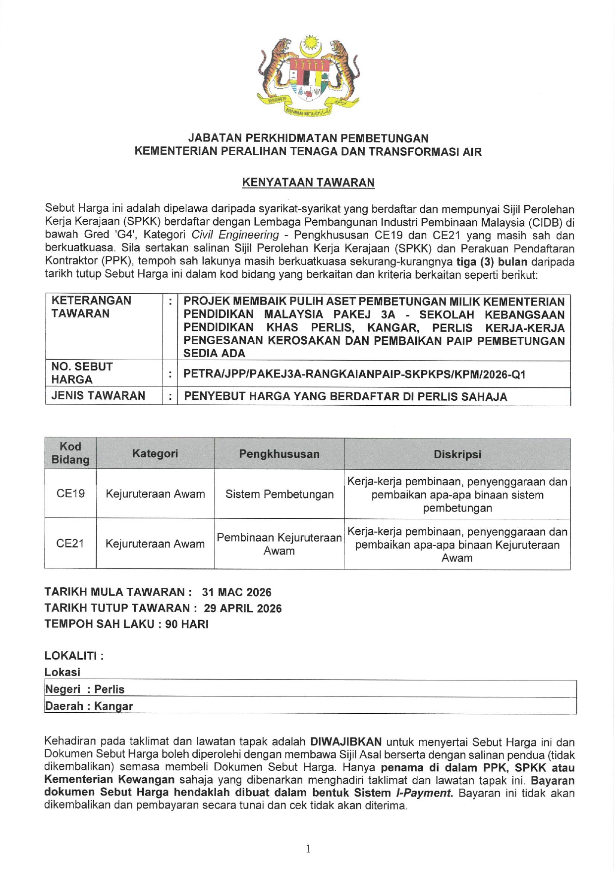 Tarikh Tutup Tawaran : 29/4/2026