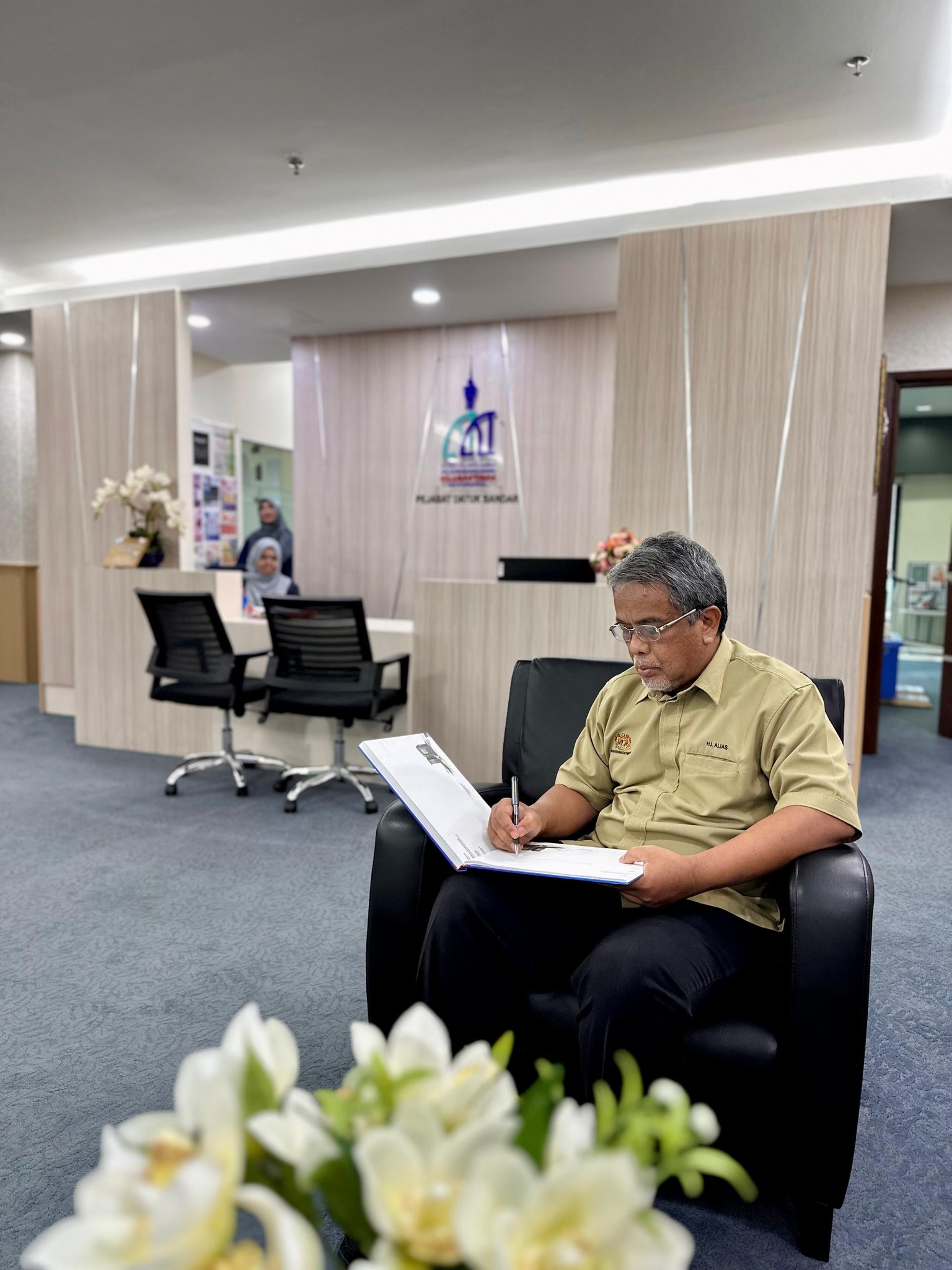 Kunjungan hormat YBrs. Hj. Alias bin Mohamed Ketua Pengarah Jabatan Perkhidmatan Pembetungan (JPP) kepada YH. Dato' Zaliza bin Zulkipli merangkap Datuk Bandar Kuantan berhubung pelaksanaan Projek Loji Rawatan Kumbahan Serantau dan Rangkaian Paip Pembetungan di Bandar Indera Mahkota, Kuantan, Pahang.